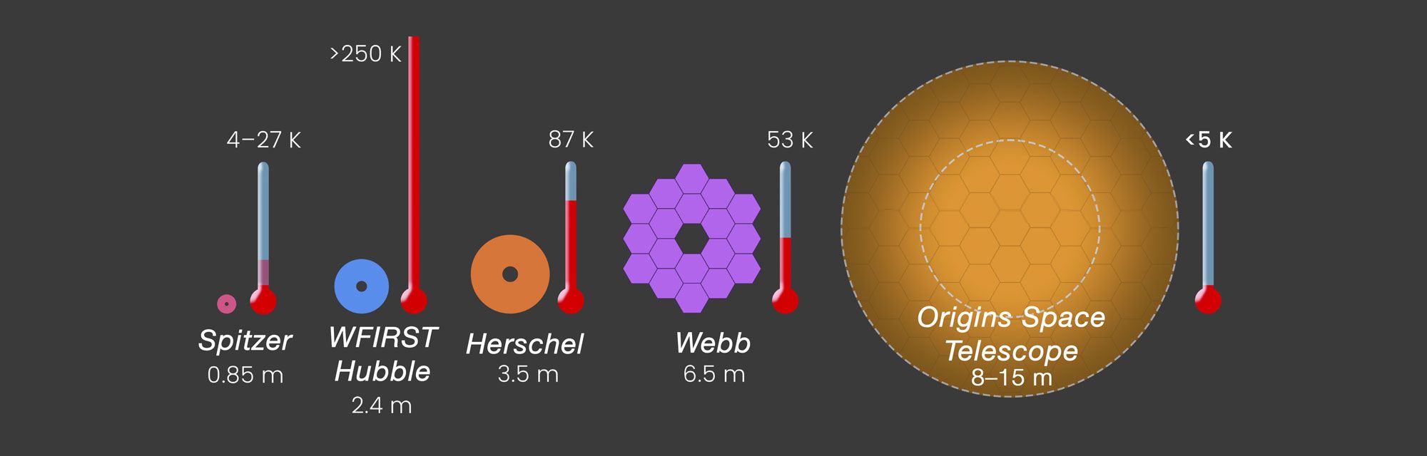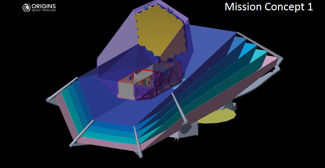 The Origins Space Telescope is the concept for an infrared telescope with a 5.9-meter diameter mirror, and would be two to four orders of magnitude more sensitive than the European Space Agency’s former Herschel Observatory.